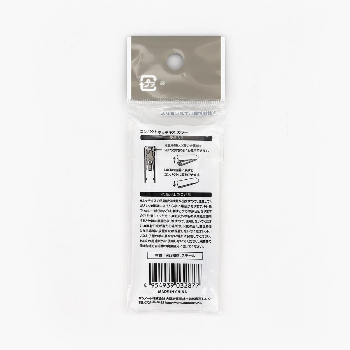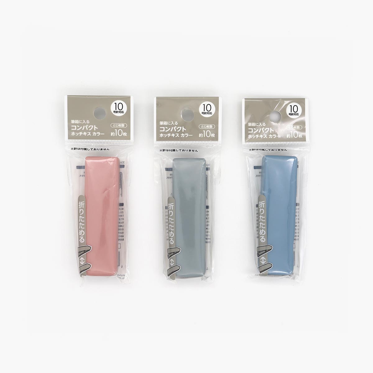 10号針に対応しているホッチキスです。折りたたむことでコンパクトに収納することができ、筆箱やお道具箱の中で幅をとることがありません。とじ枚数は約10枚です。