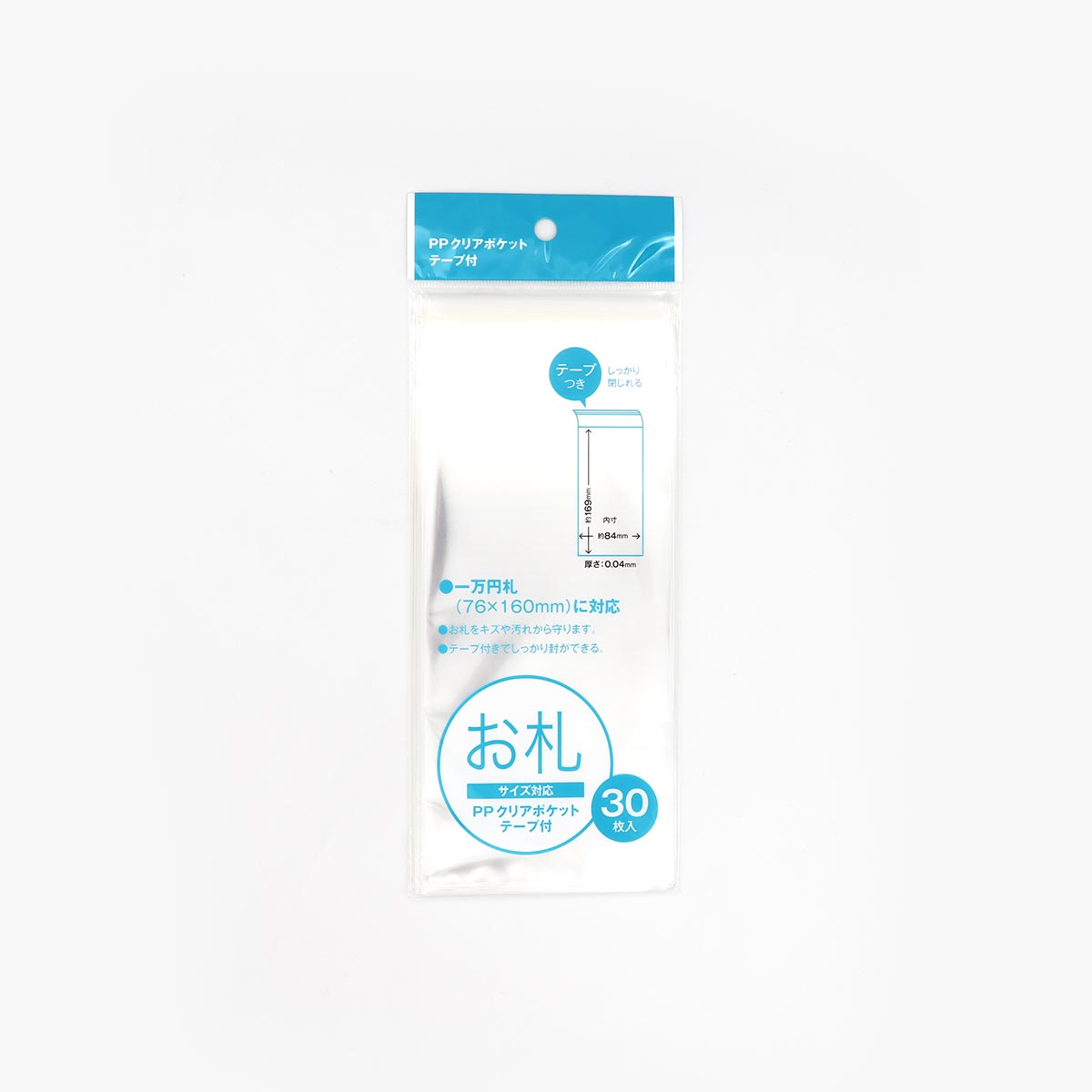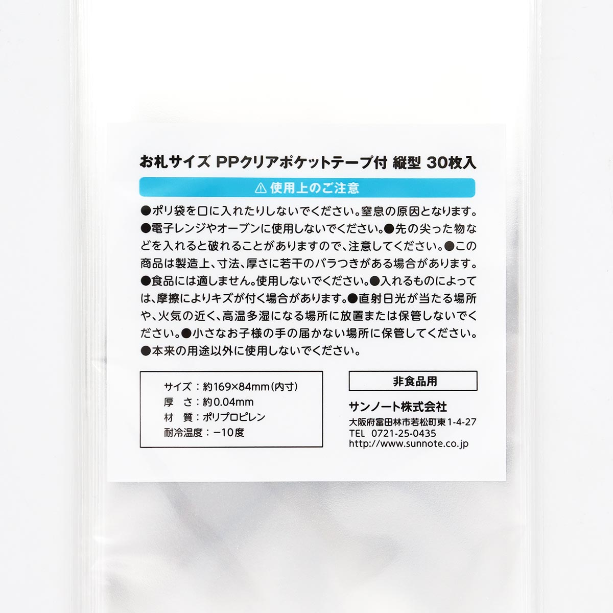 お札サイズ PPクリアポケット テープ付 縦型 30枚入