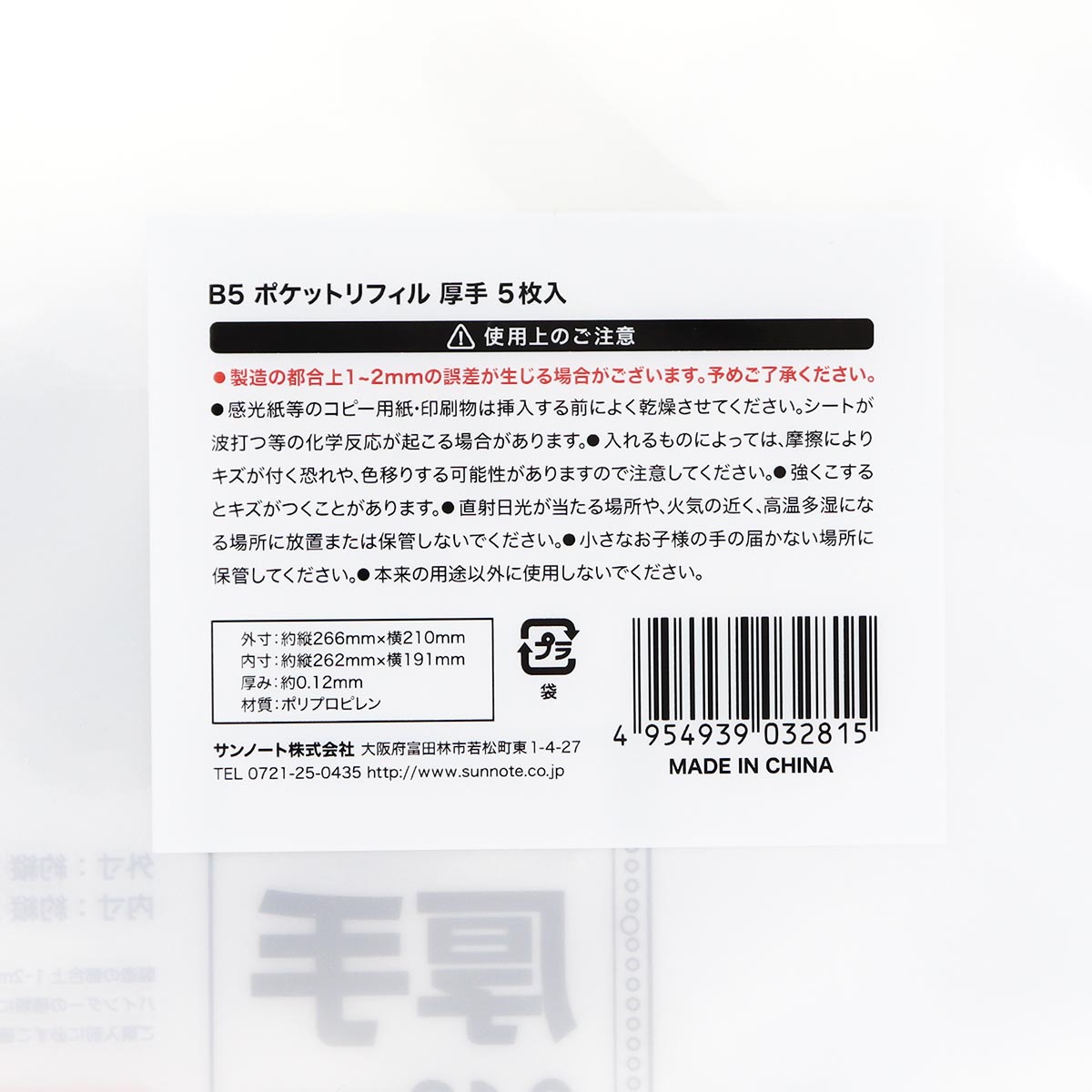 通常のリフィールより厚い、約0.12mmの丈夫で破れにくいポケットリフィルです。