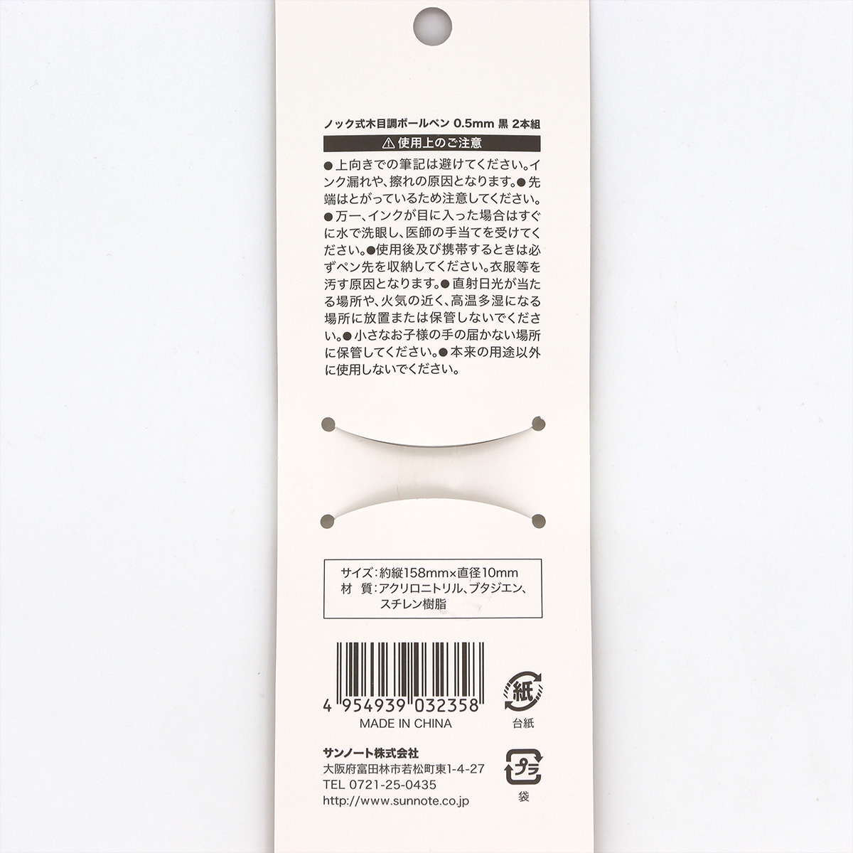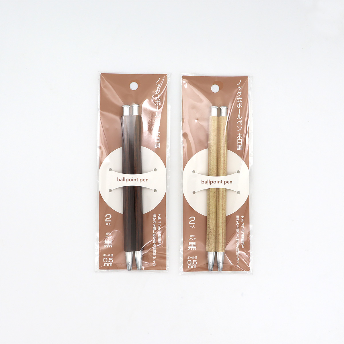ノック式木目調ボールペン 0.5mm 黒 2本組