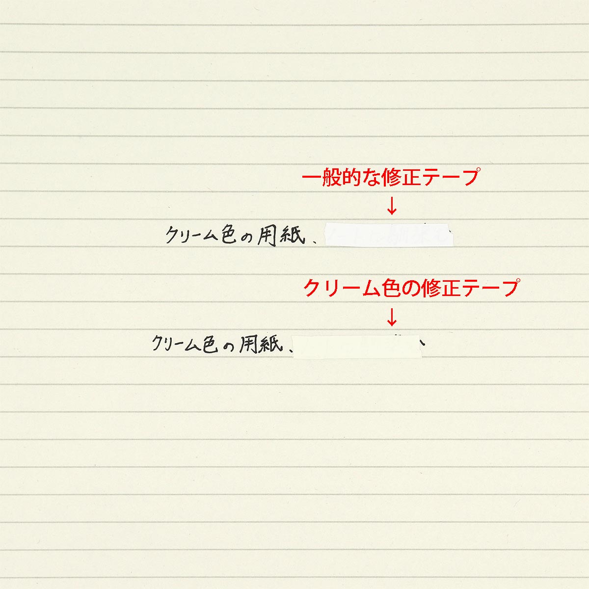 クリーム色の用紙・ノートでも修正箇所が浮きにくく、自然に仕上がります
