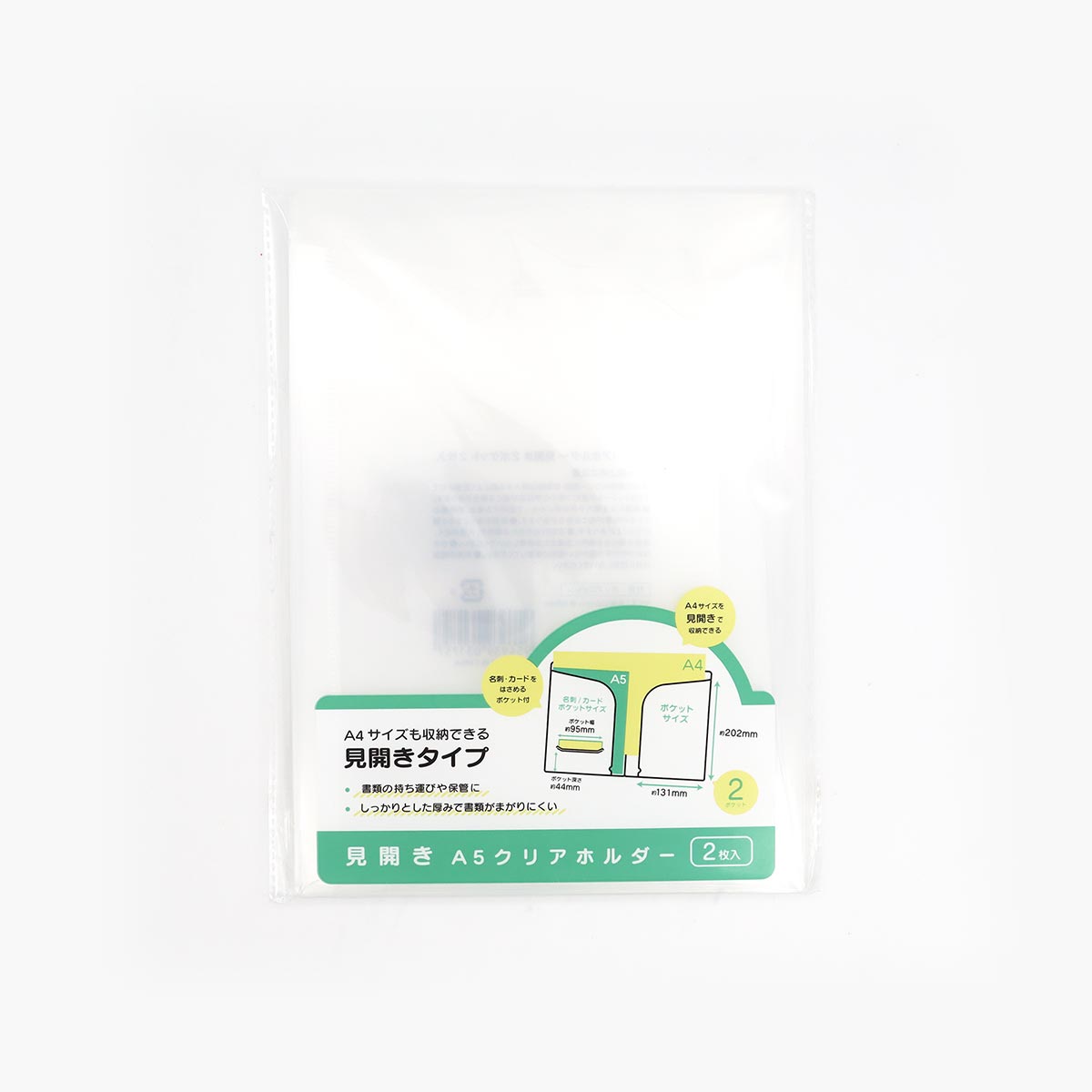 - A5 クリアホルダー 見開き2ポケット 2枚入