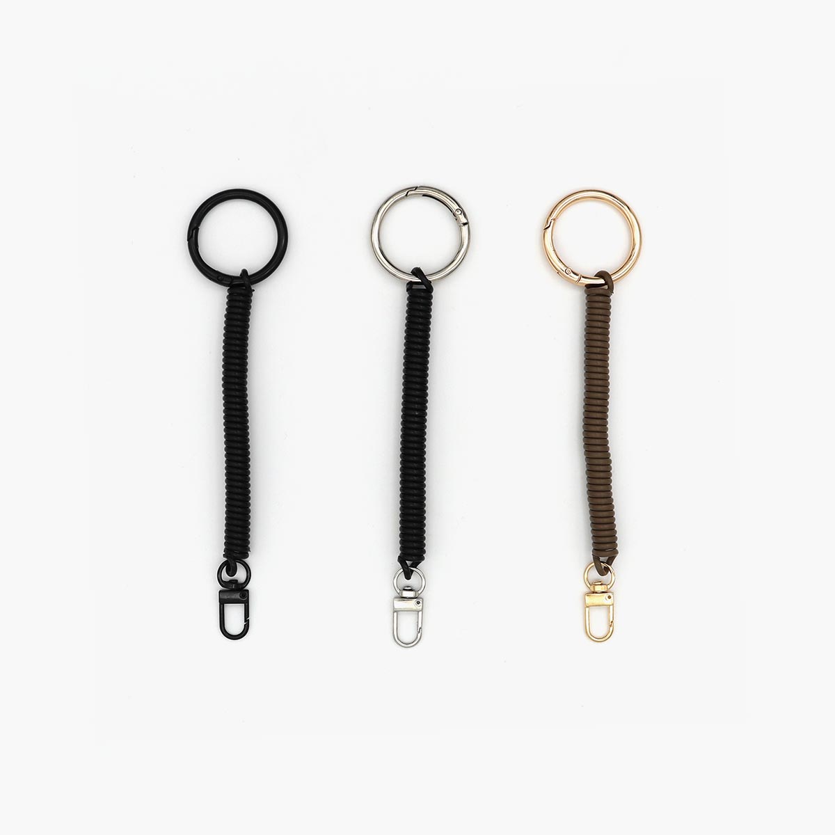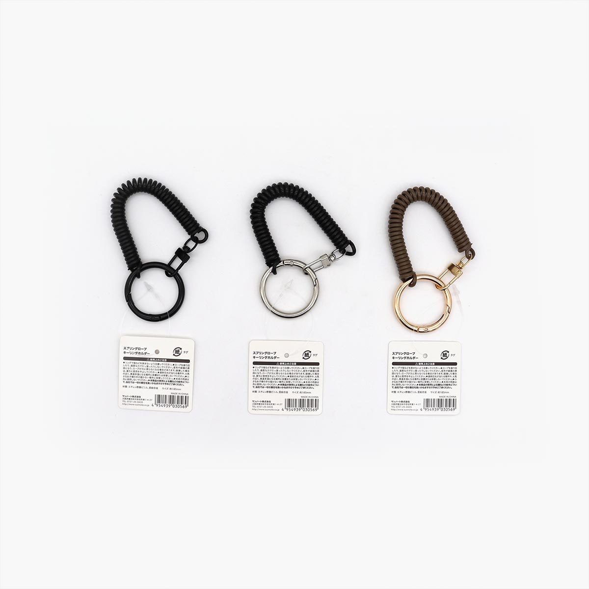 スプリングロープのキーリングホルダーです。伸び縮みするので普段はコンパクトに、使用する際は伸ばすことができます。