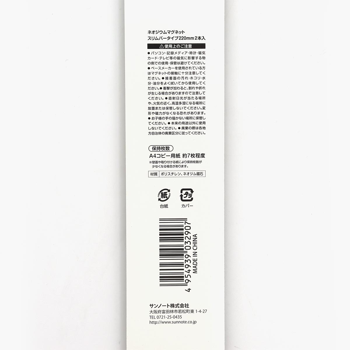 ネオジウムマグネット スリムバータイプ 220mm 2本入