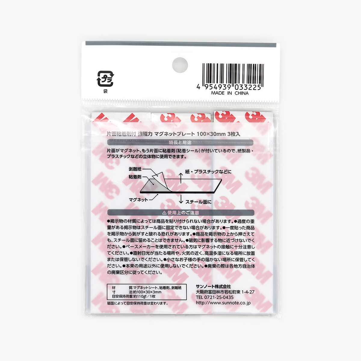 片面粘着剤付 強磁力 マグネットプレート 100x30mm 3枚入
