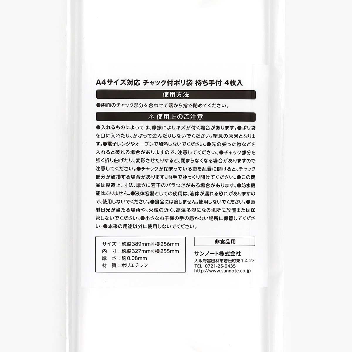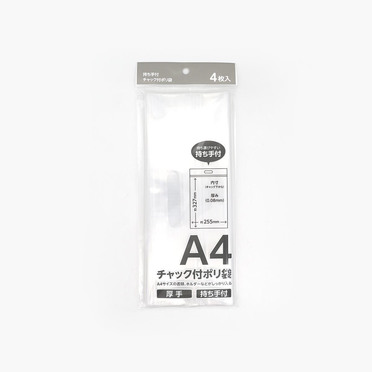 A4サイズ対応 チャック付ポリ袋 持ち手付 4枚入
