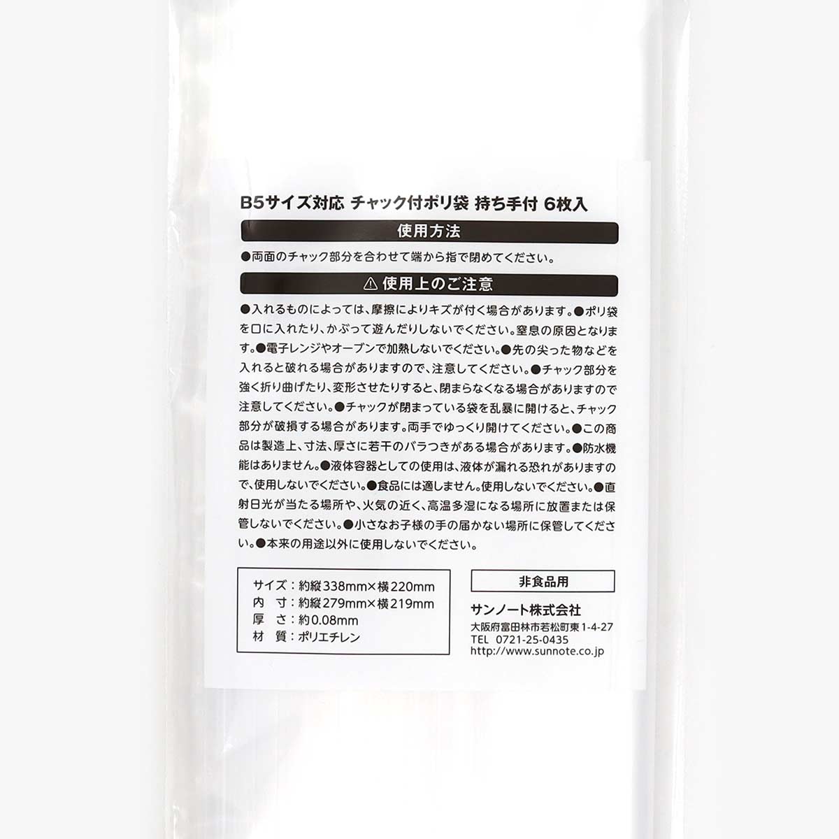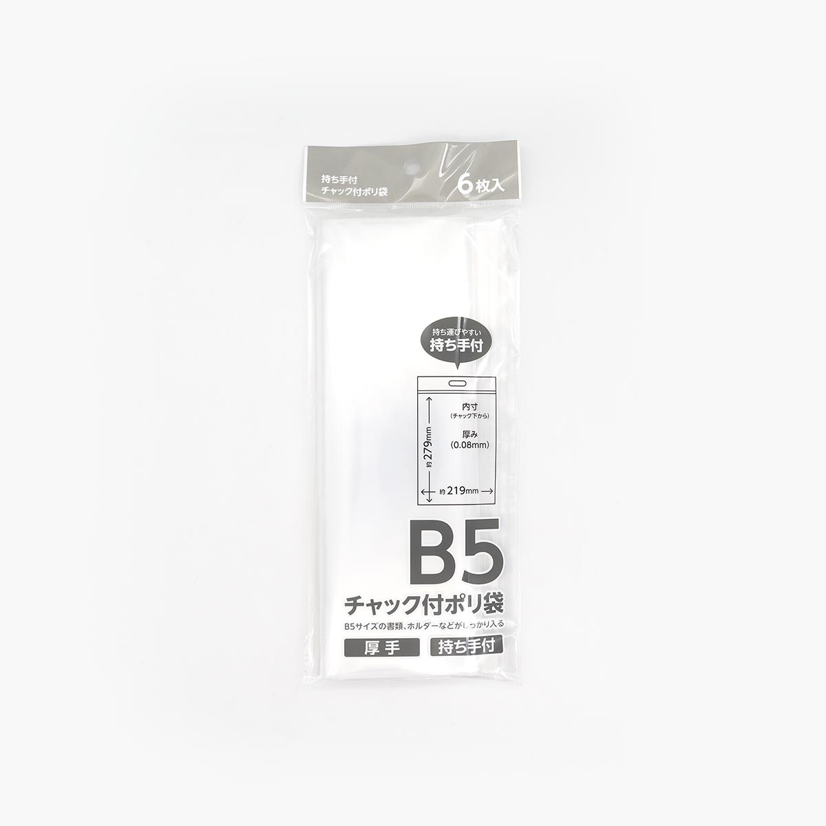 B5サイズ対応 チャック付ポリ袋 持ち手付 6枚入