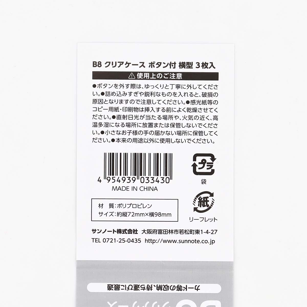 B8 クリアケース ボタン付 横型 3枚入