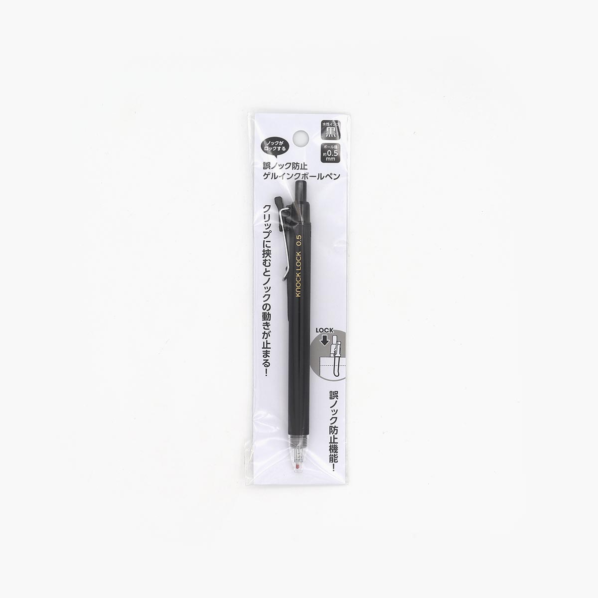 ノックがロックできる ノック式ゲルインクボールペン クリップ付 0.5mm 黒