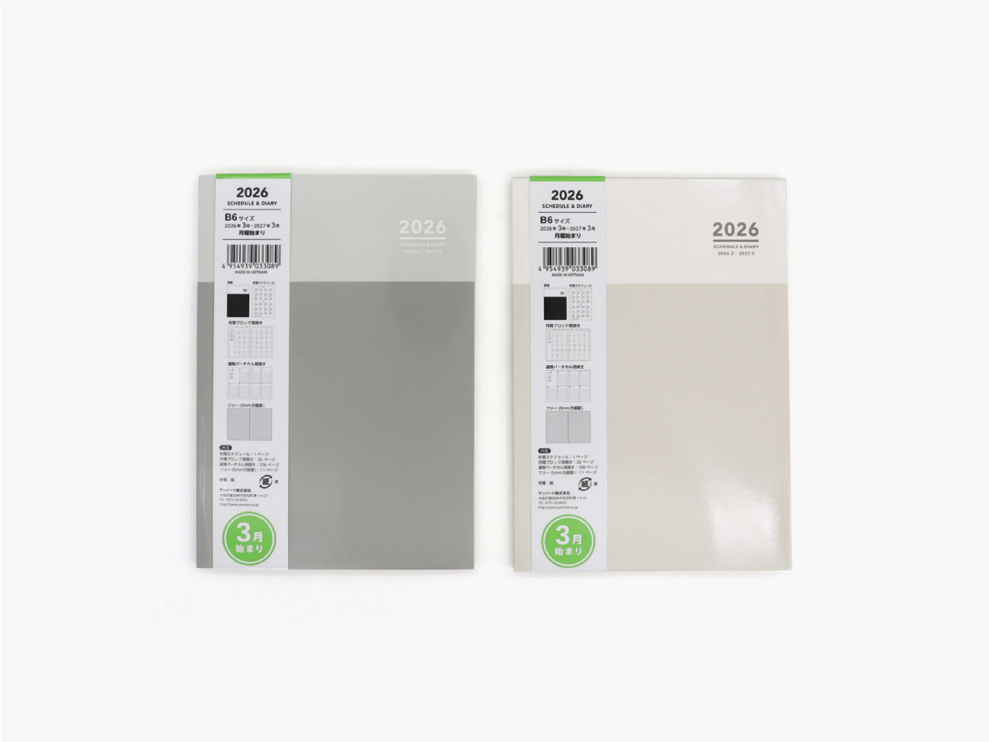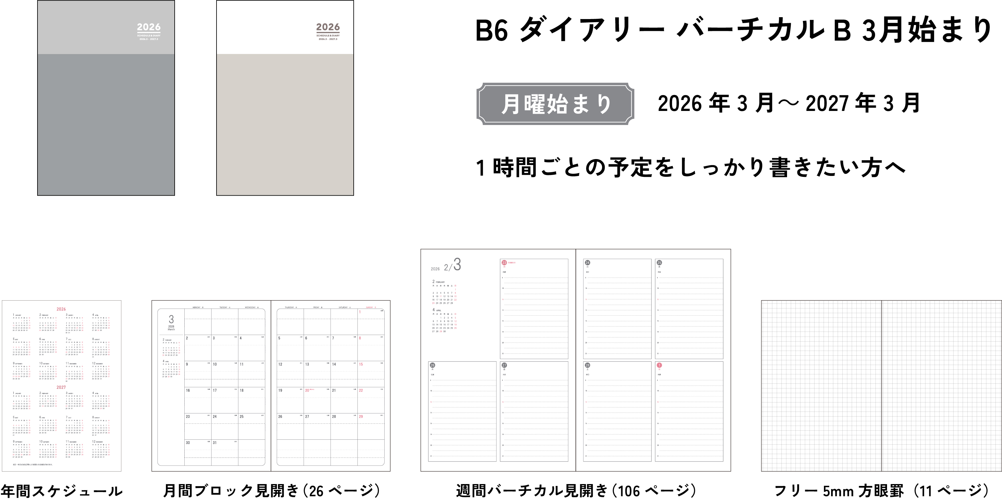 B6 ダイアリー バーチカルB 2026 3 月始まり