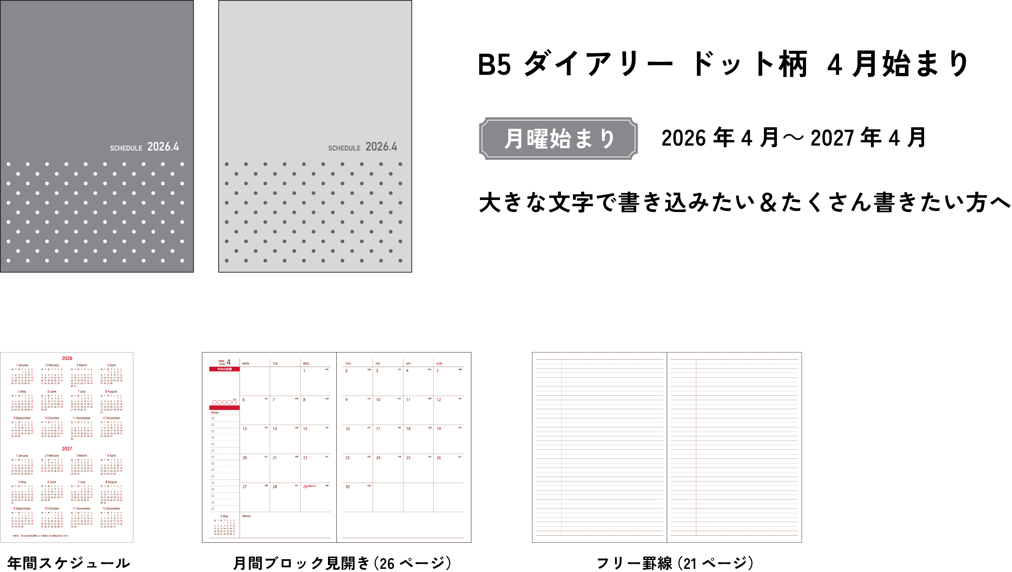 B5 ダイアリー ドット柄 2026 4 月始まり