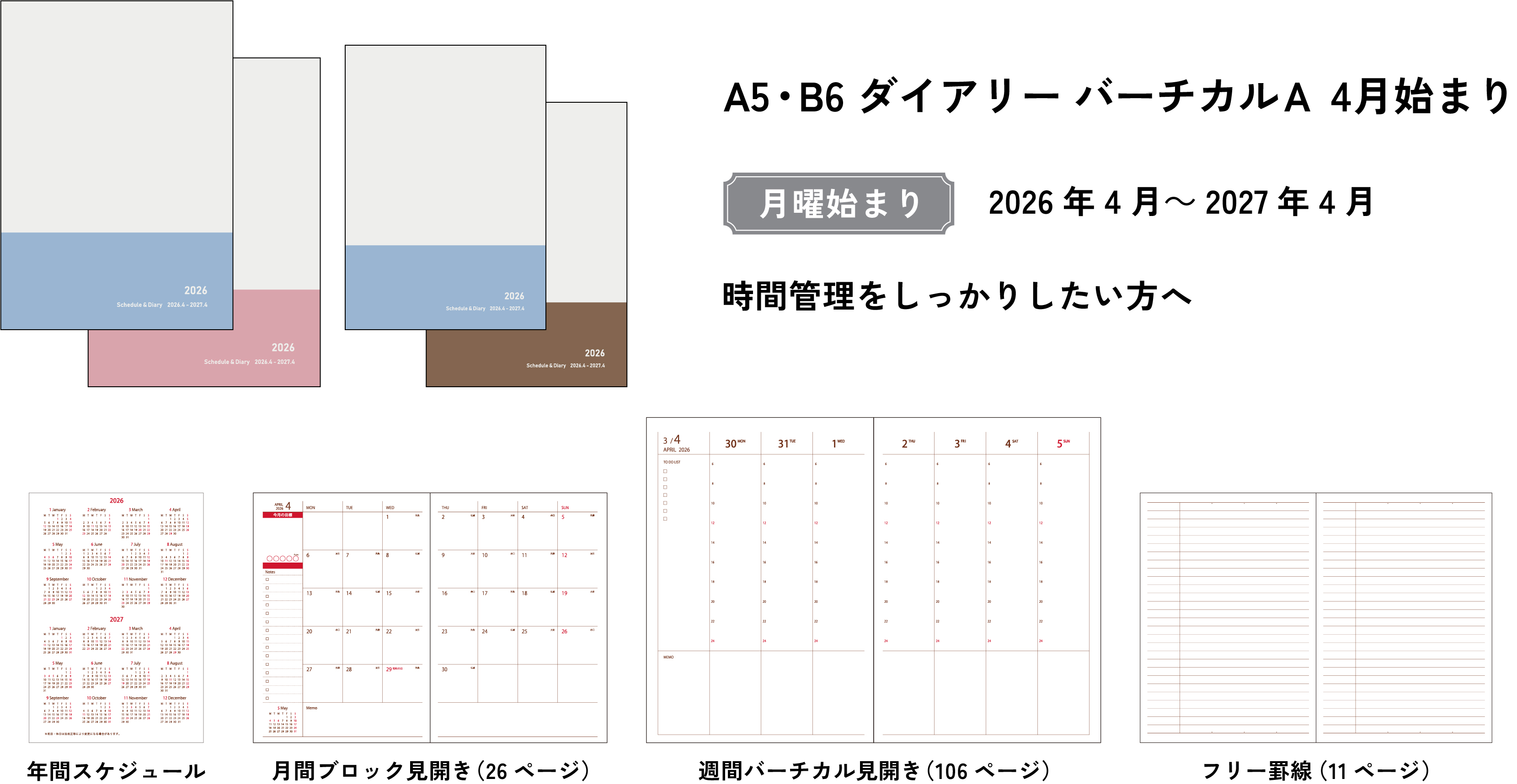 B6 ダイアリー バーチカルA 2026 4 月始まり