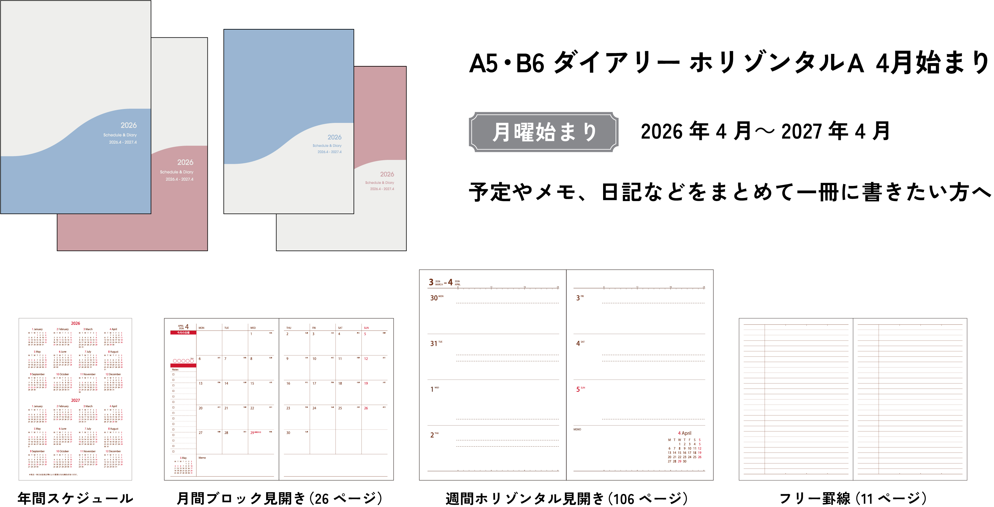 B6 ダイアリー ホリゾンタルA 2026 4 月始まり